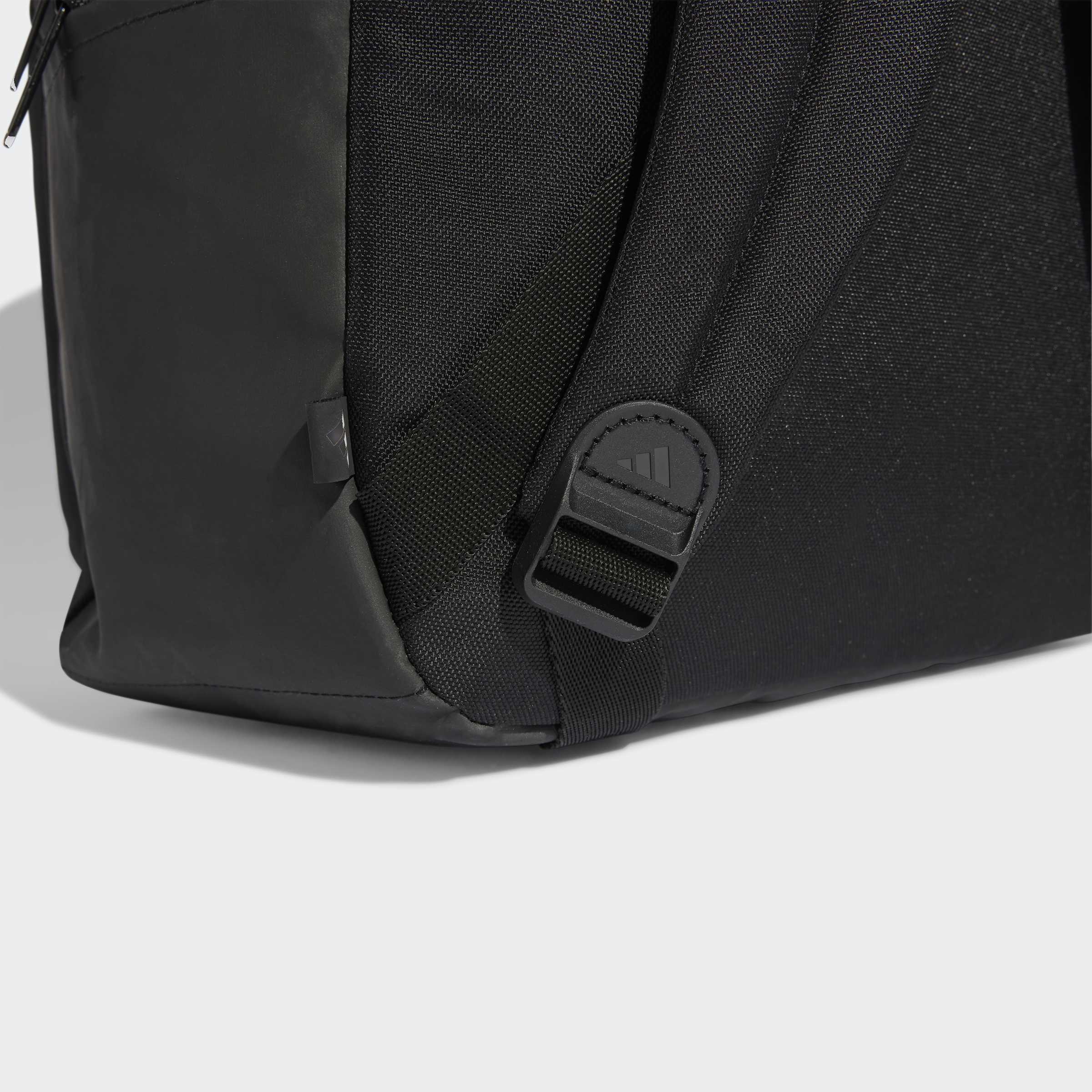 حقيبة ظهر عصرية مع شعار أديداس الرياضي، مصنوعة جزئياً من مواد مُعاد تدويرها.