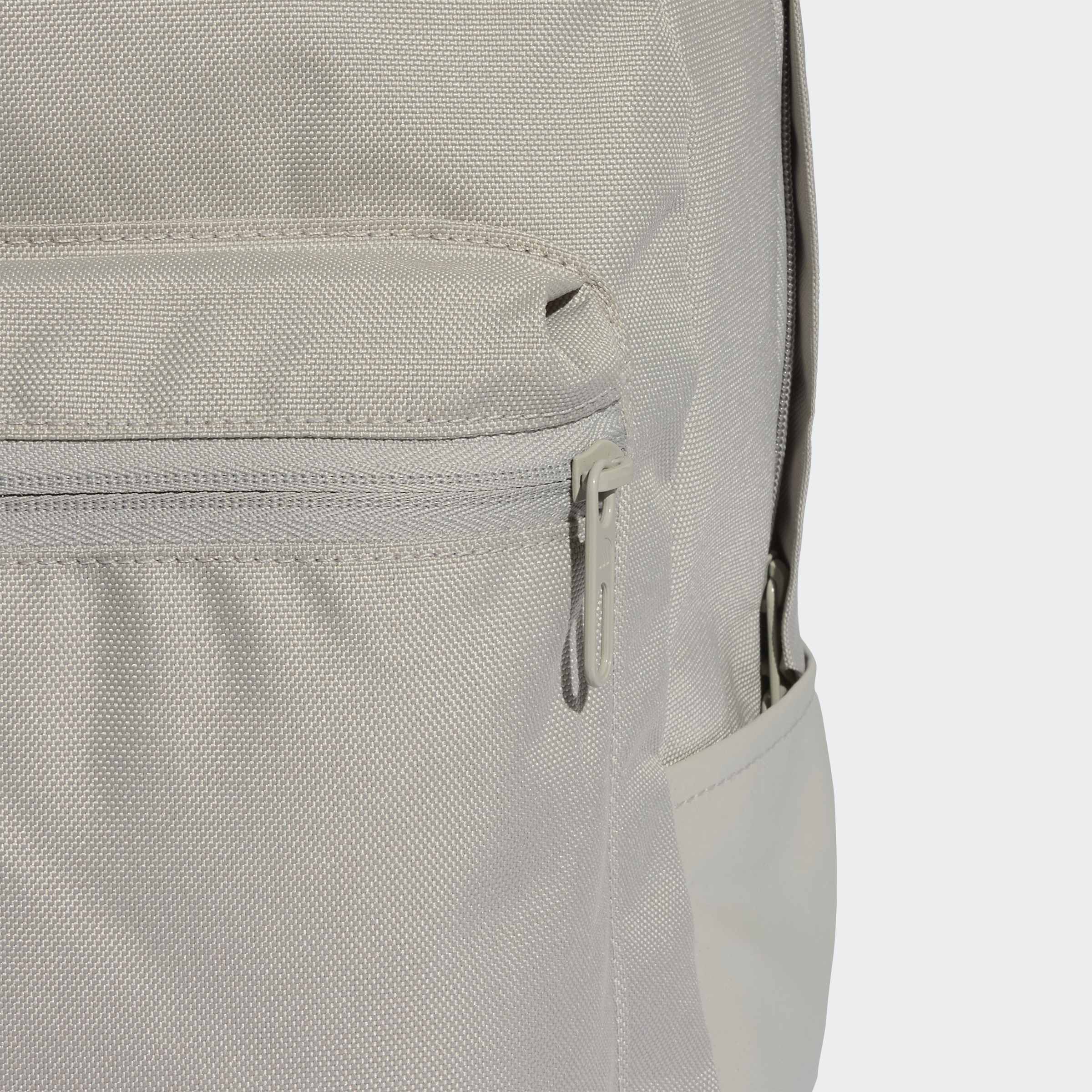 حقيبة ظهر عصرية مع شعار أديداس الرياضي، مصنوعة جزئياً من مواد مُعاد تدويرها.