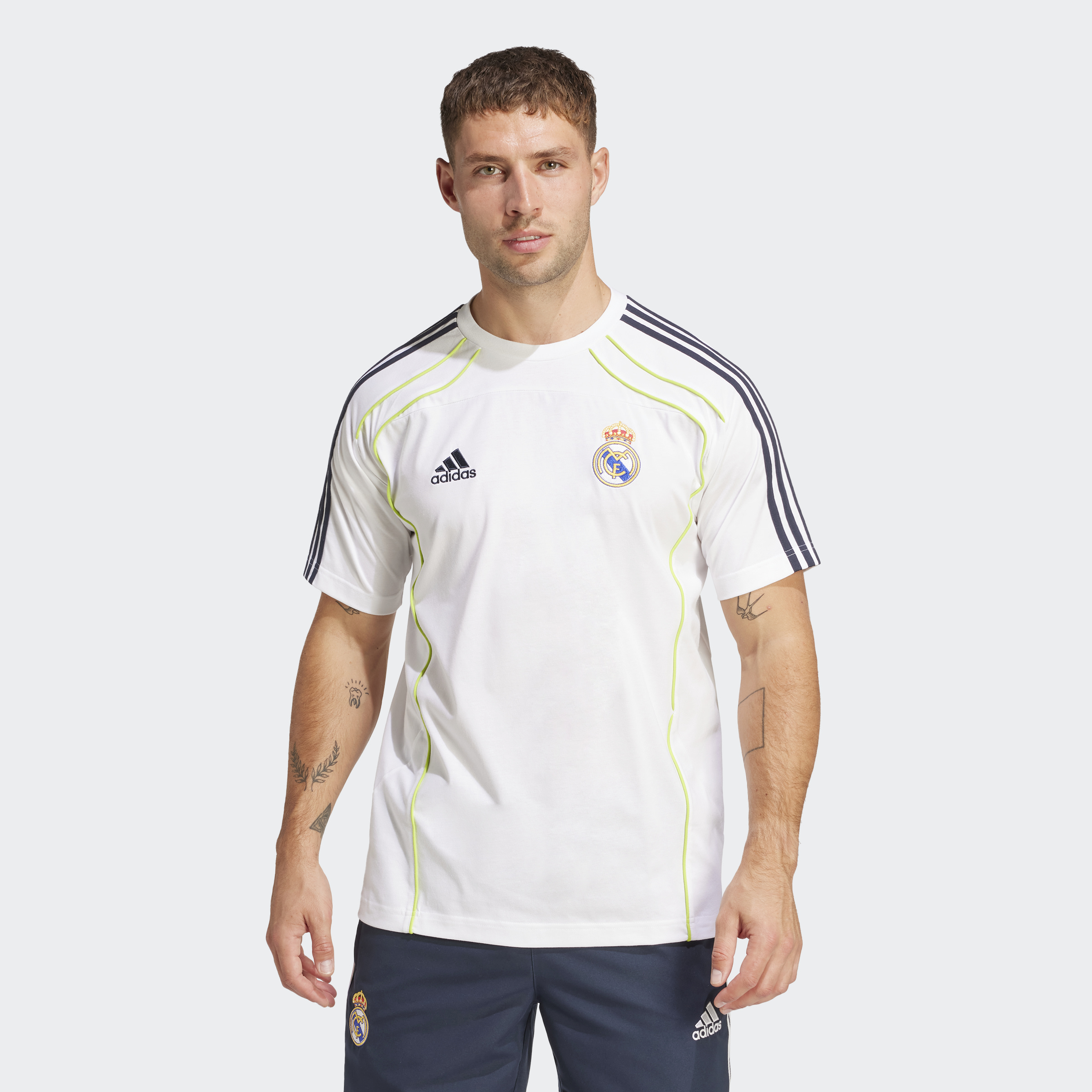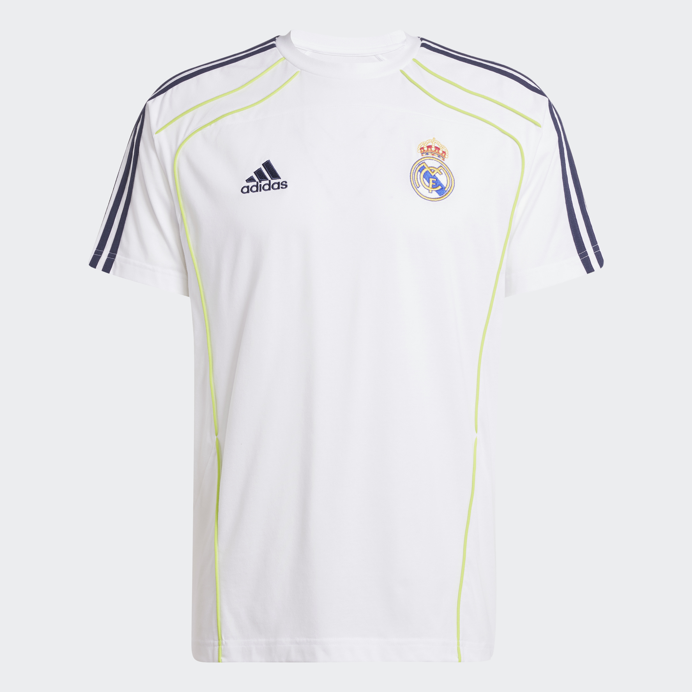 أظهر حبك لريال مدريد في هذه التيشيرت الكلاسيكية البسيطة من أديداس. صُممت لتعكس طابع ألبسة يوم المباراة في عقد 2010، وصُنعت من نسيج جيرسي واحد ناعم لتوفر راحة وتهوية في كل مرة ترتديها. لطالما كان شعار النادي الشهير المطرَّز على الصدر رمزًا للتفوق عبر عصور كرة القدم.